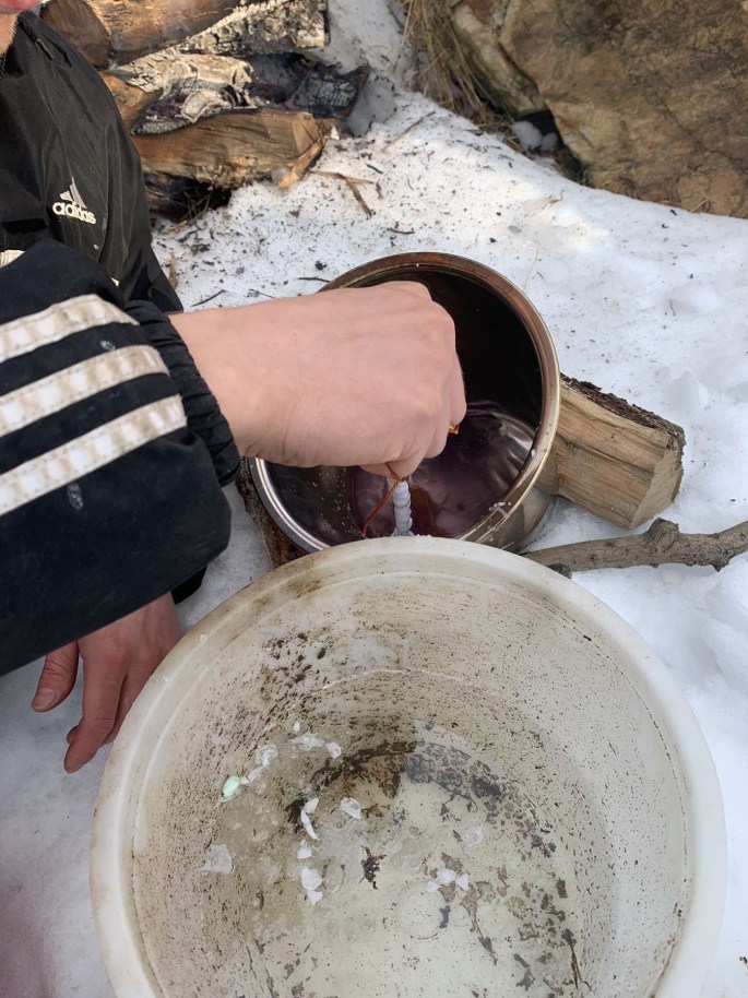 I love all different type of crafts, especially learning new ones; lucky for me, Tristan attended a living history camp as a kid and knows how to dip candlesticks by hand! For our anniversary, we decided to make homemade candles the old-fashioned way, over an open fire and with a cold bucket of water.