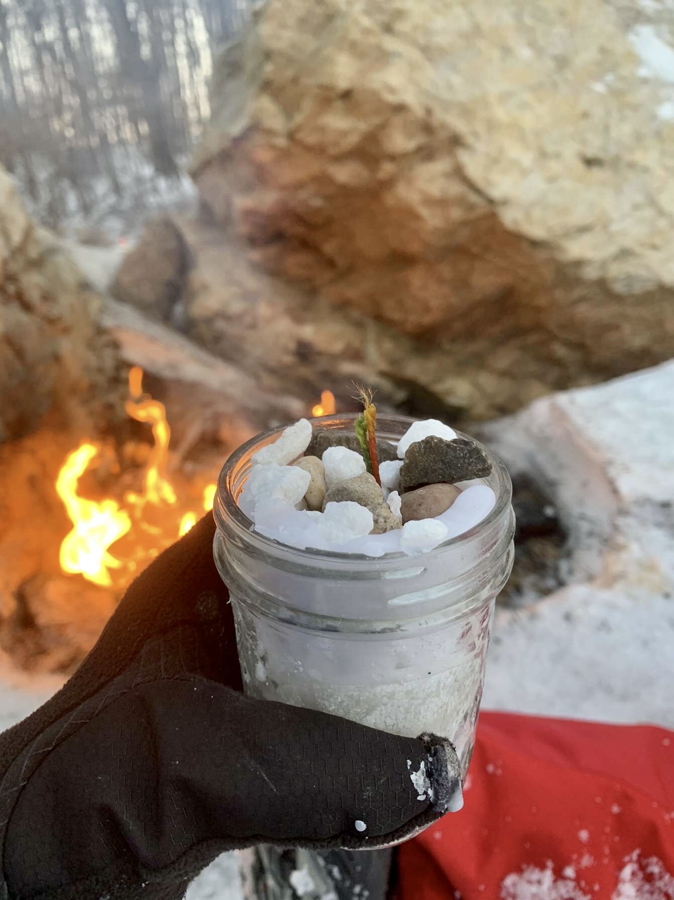 After experimenting with the first batch we realized we shouldn’t fill the bottom of the candle with rocks because it probably won’t burn well. However, in the second batch we still used them for decoration…this batch burns so now we realized that the rocks don’t even work for decoration because the wax does not burn evenly.